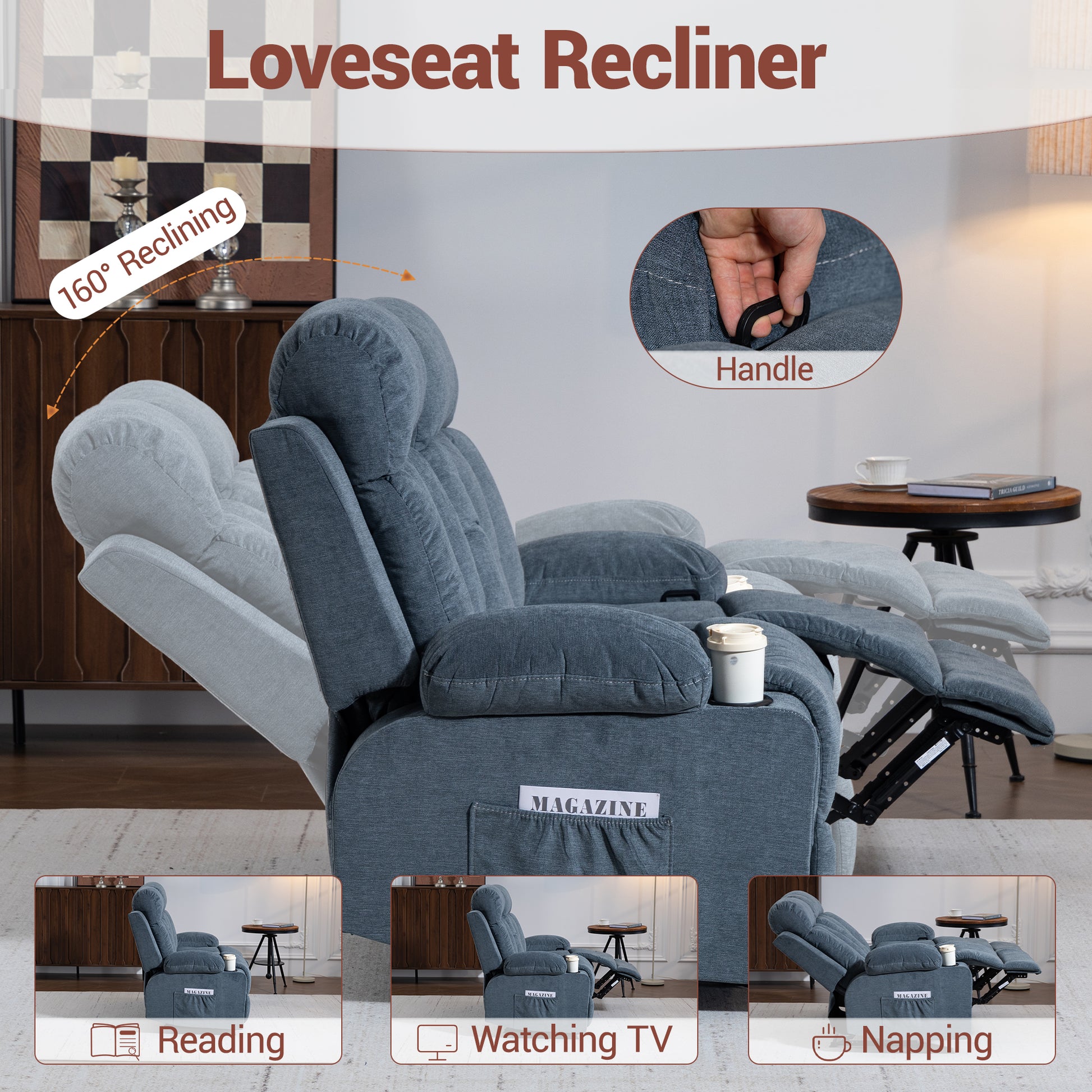 DELMANGO 2-Seater Loveseat Recliner Sofa with Cup Holders, Manual Reclining Dual Seat Couch for Living Room, Home Theater & Small Spaces, Blue